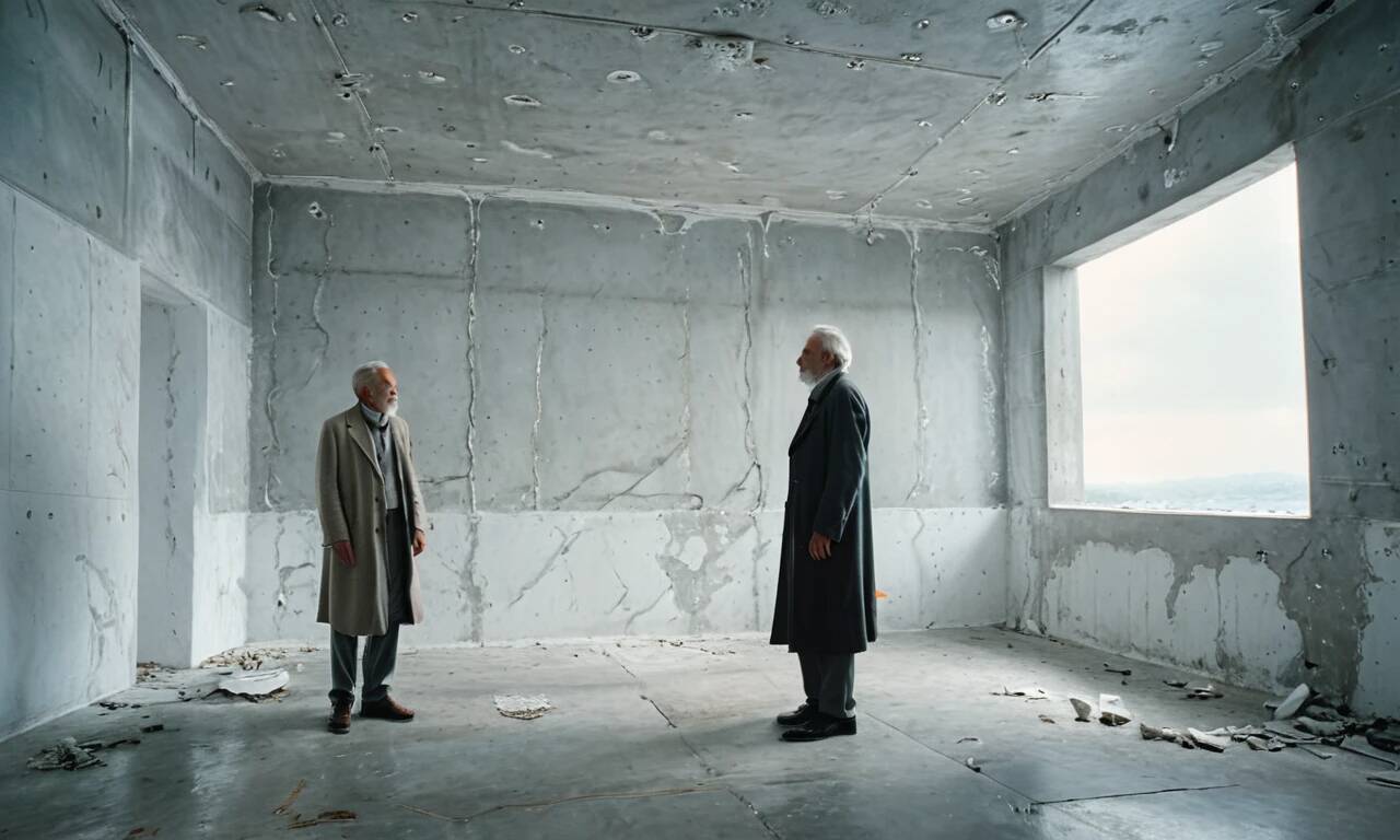 Старик тянет руки к седой голове.