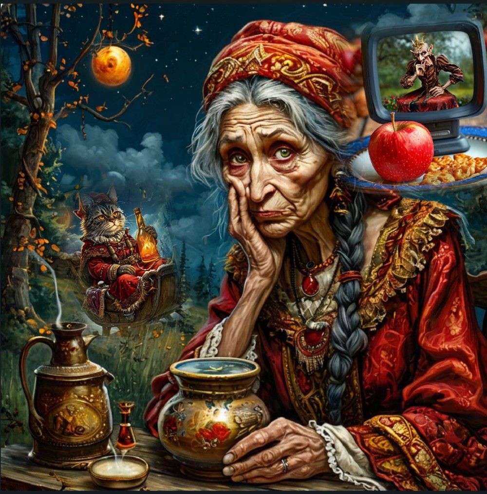 Ходит Яга вкруг котла на огне против солнца.