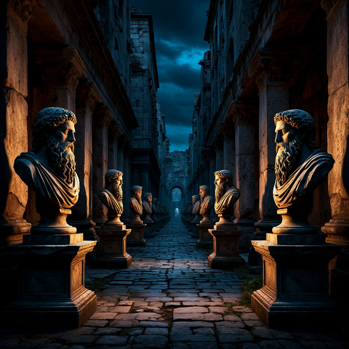 Смотрят боги с постаментов.