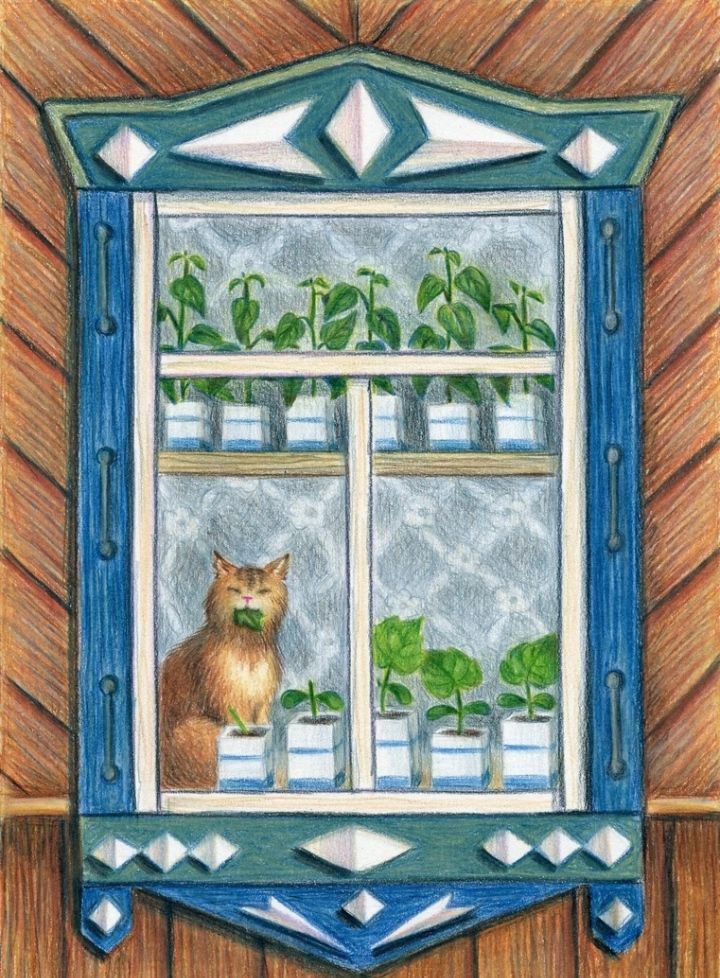 И примостившись у окошка
