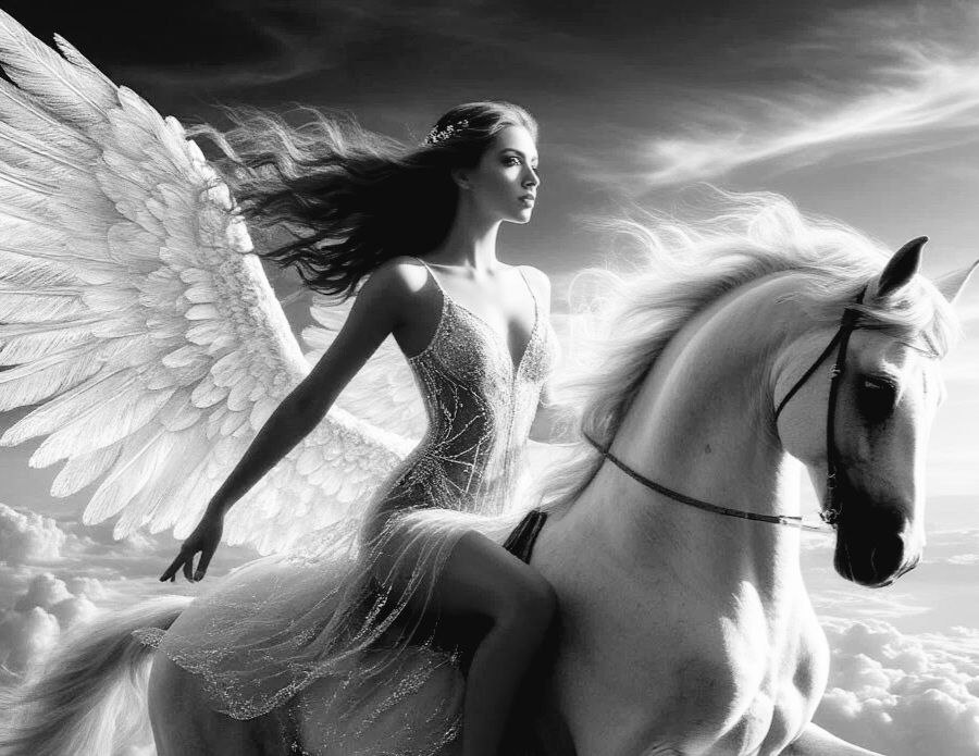 Меня Пегас уносит на сильных крыльях вдаль.
