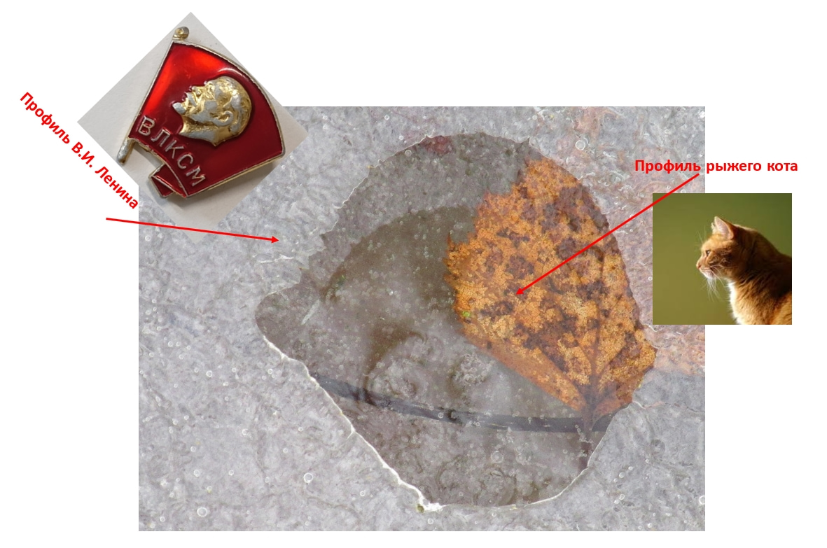 Сочетание профиля В.И. (Ульянова) Ленина и портрета рыжего кота.