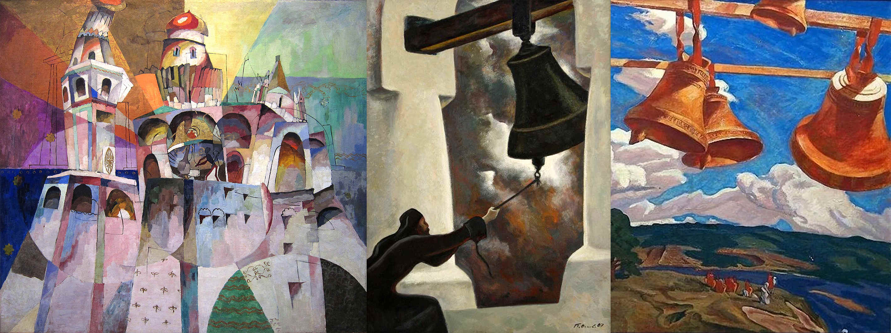 Представлены полотна следующих живописцев: Аристарха Лентулова («Звон.Колокольня Иван Великий»), Петра Оссовского («Набатный колокол»), Марии Якунчиковой .