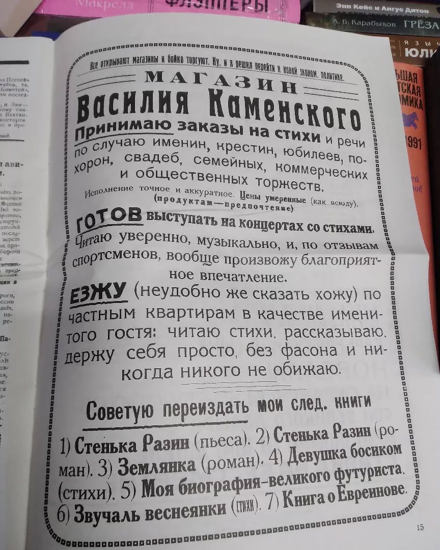 Да вот в эти, которые вы видите на картинке. Поэт-футурист, прозаик, художник, один из первых русских авиаторов. Член союза «Председателей земного шара».