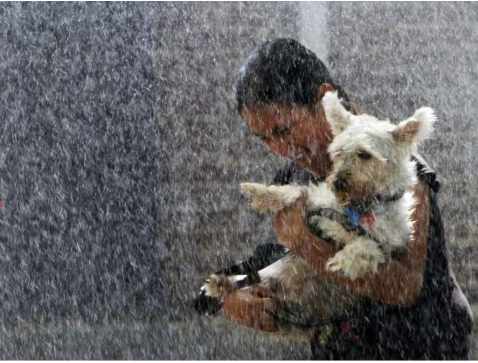 И смывает собакину каку
