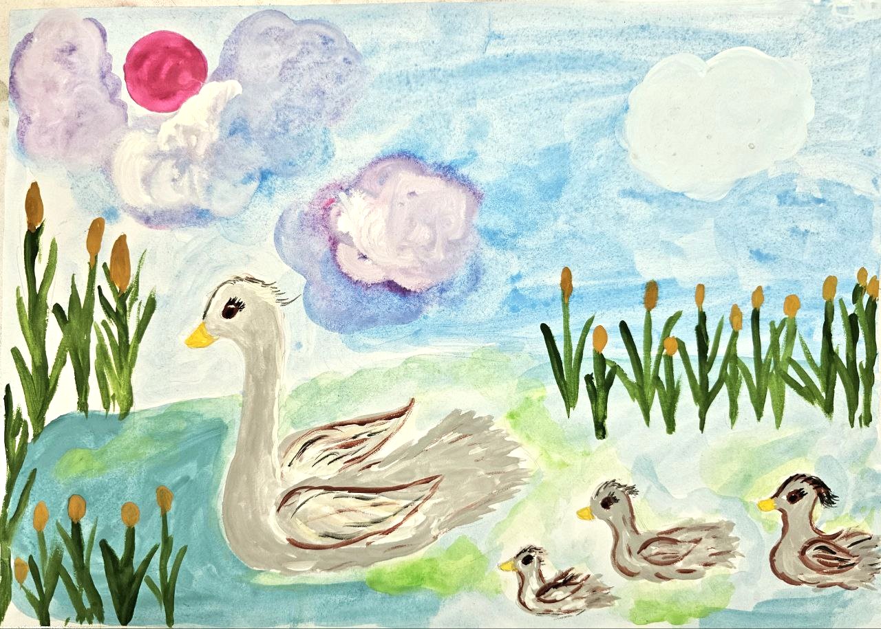 Закат ласково коснется утиных детей,