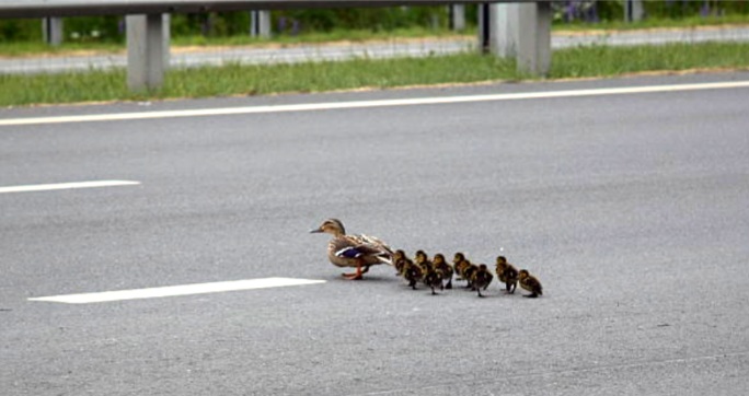 переводя свой выводок неспешно.