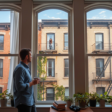Красивый день и девушка в окне.