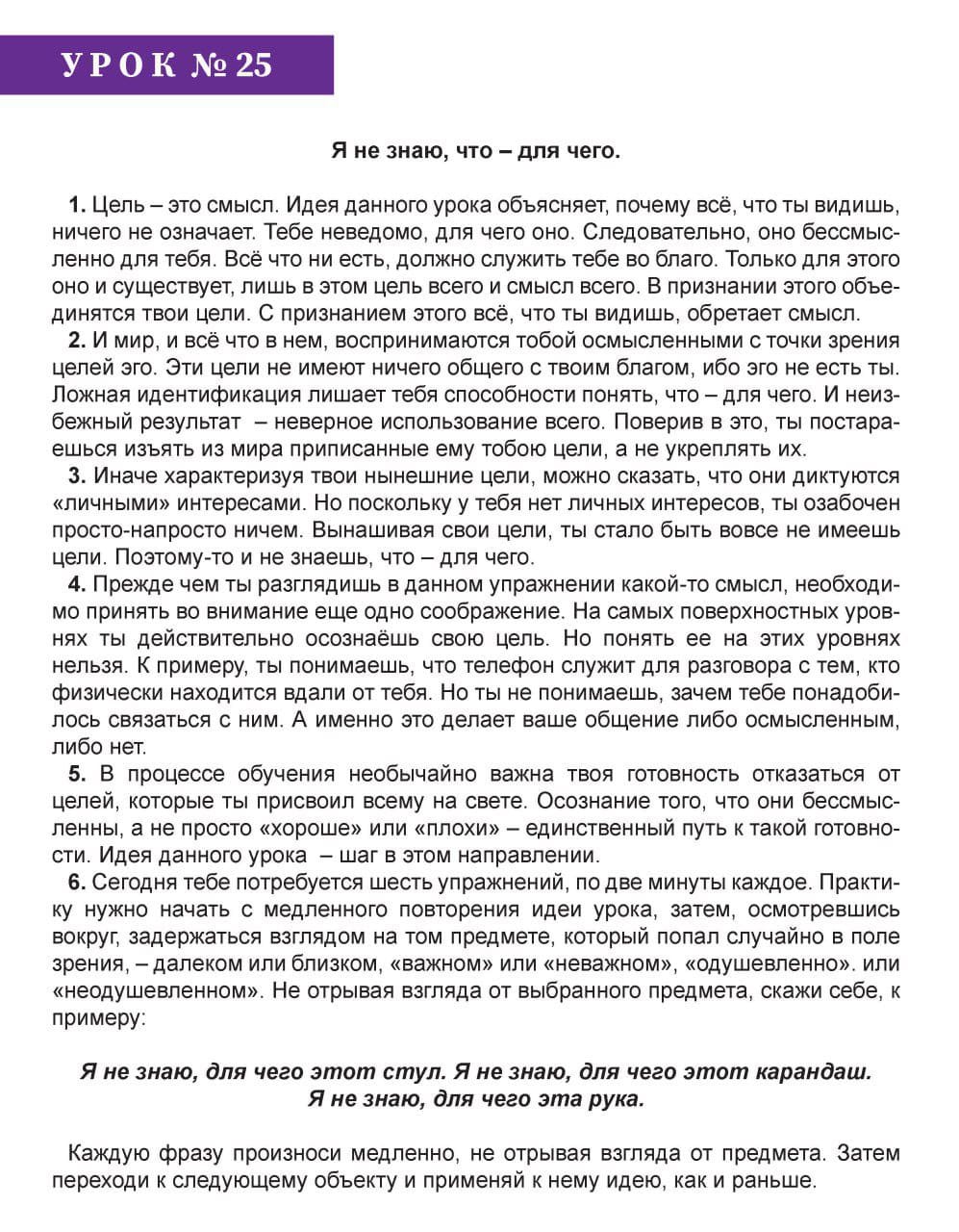 Всё, что ни есть, должно служить тебе во благо. Только для этого оно и существует, лишь в этом цель всего и смысл всего. В признании этого объединятся твои цели. С признанием этого всё, что видишь, обретает смысл.