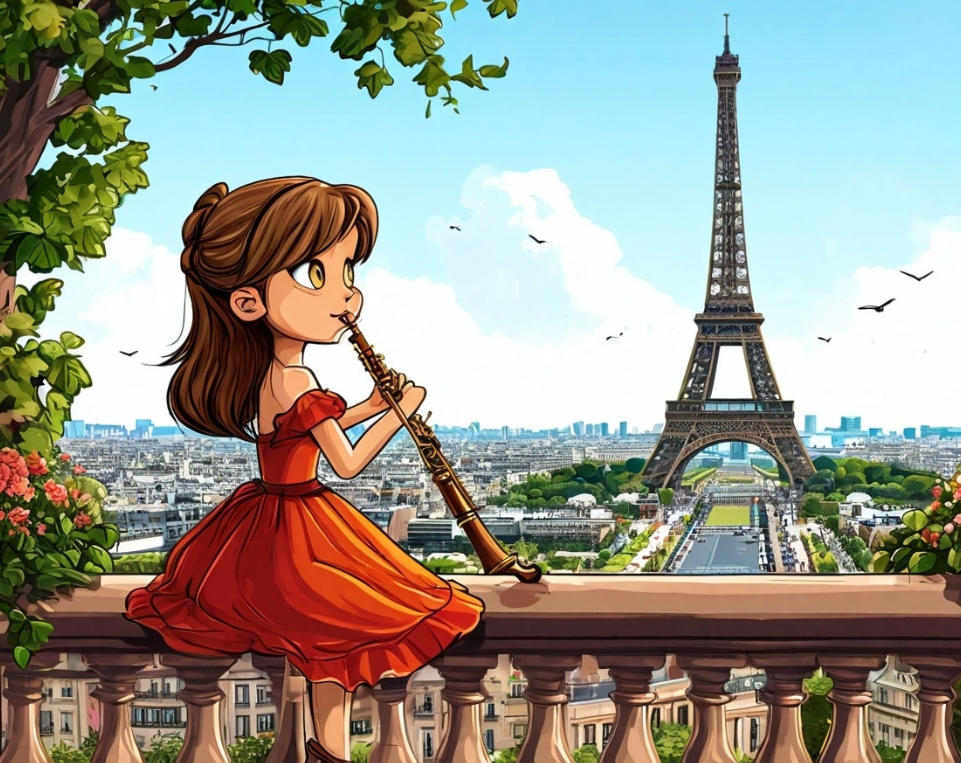 Бежит по летнему Парижу.