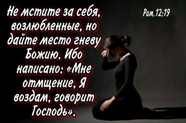 «Никому не воздавайте злом за зло, но пекитесь о добром перед всеми человеками. Если возможно с вашей стороны, будьте в мире со всеми людьми. Не мстите за себя, возлюбленные, но дайте место гневу Божию. Ибо написано: «Мне отмщение, Я воздам, говорит Господь». Итак, если враг твой голоден, накорми его; если жаждет, напои его: ибо, делая сие, ты соберешь ему на голову горящие уголья. Не будь побежден злом, но побеждай зло добром.» (Римлянам 12:17-21)