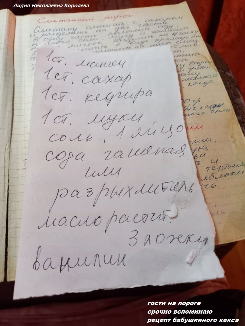 у моей мамы была кулинарная книга, и в ней, между страницами, попадались такие вот листочки с рецептами - от руки...