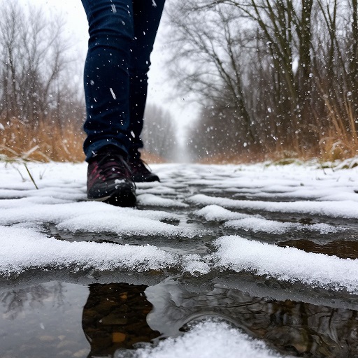 Ногой растаптывала льдинки.