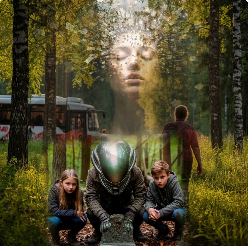 — Обнимемся ещё, девочка. Не надо плакать. Я сейчас далеко отсюда, пока пообщайся с моей голограммой, так у вас, кажется, называют подобное присутствие. Я пришёл предупредить тебя на счёт твоего друга Валерки. Он уже нашёл прибор. Скоро вы встретитесь. Обо мне не говори никому. Рано ещё. Пластинку, что Лешачиха подарила, береги. Это связь. Вначале формулируешь в голове образ или просьбу, потом дуешь в дырочки. Но это потом обсудим. Валерке не давай примерять прибор на голову. Там не хватает одной детали, а без неё может произойти сбой и твой друг переместится в... скажем, в другую эпоху. Поняла, девочка?