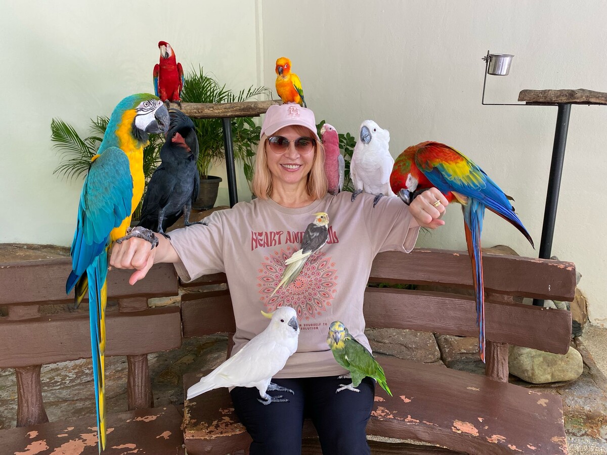 Прислала мне фотки с попугаями. Я помню, она их любит, мы и в Австралии ходили на шоу с птицами, там ещё моему мужу один попугай сделал каку - на счастье, Марина сказала: богатым будешь ссылка.