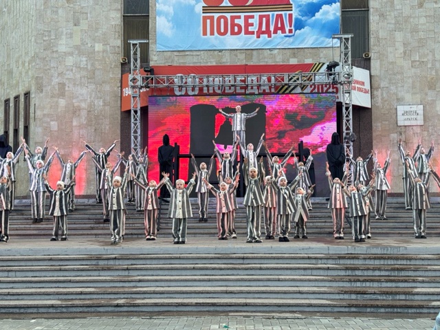 В театрализованном представлении в честь Дня Победы в Братске у Дворца искусств участвовали дочь Алина и внук, шестиклассник лицея №1 Фёдор Монахов. Он солировал с другими юными артистами в пронзительной сцене "Бухенвальдский набат".