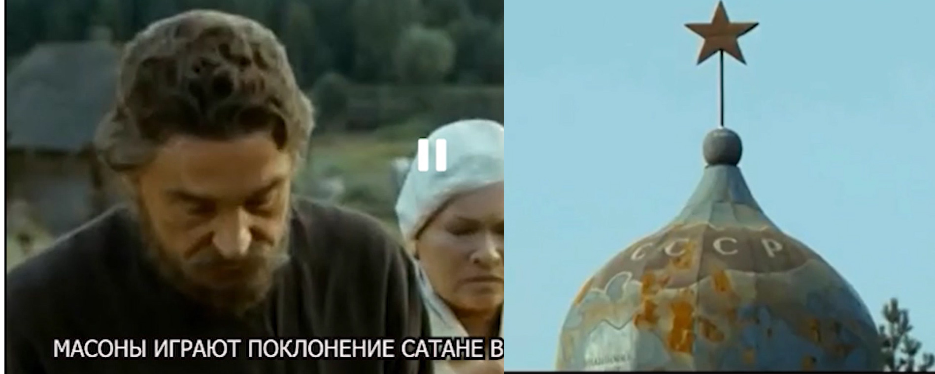 НА КАДРЕ ИХ ФИЛЬМА МАСОНСКОГО "ПОП" АРТИСТ КЛЯНЕТСЯ ЗВЕЗДЕ САТАНЫ НА ХРАМЕ