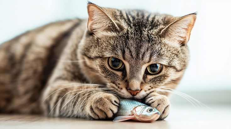 Даю ей поесть свежей рыбки.