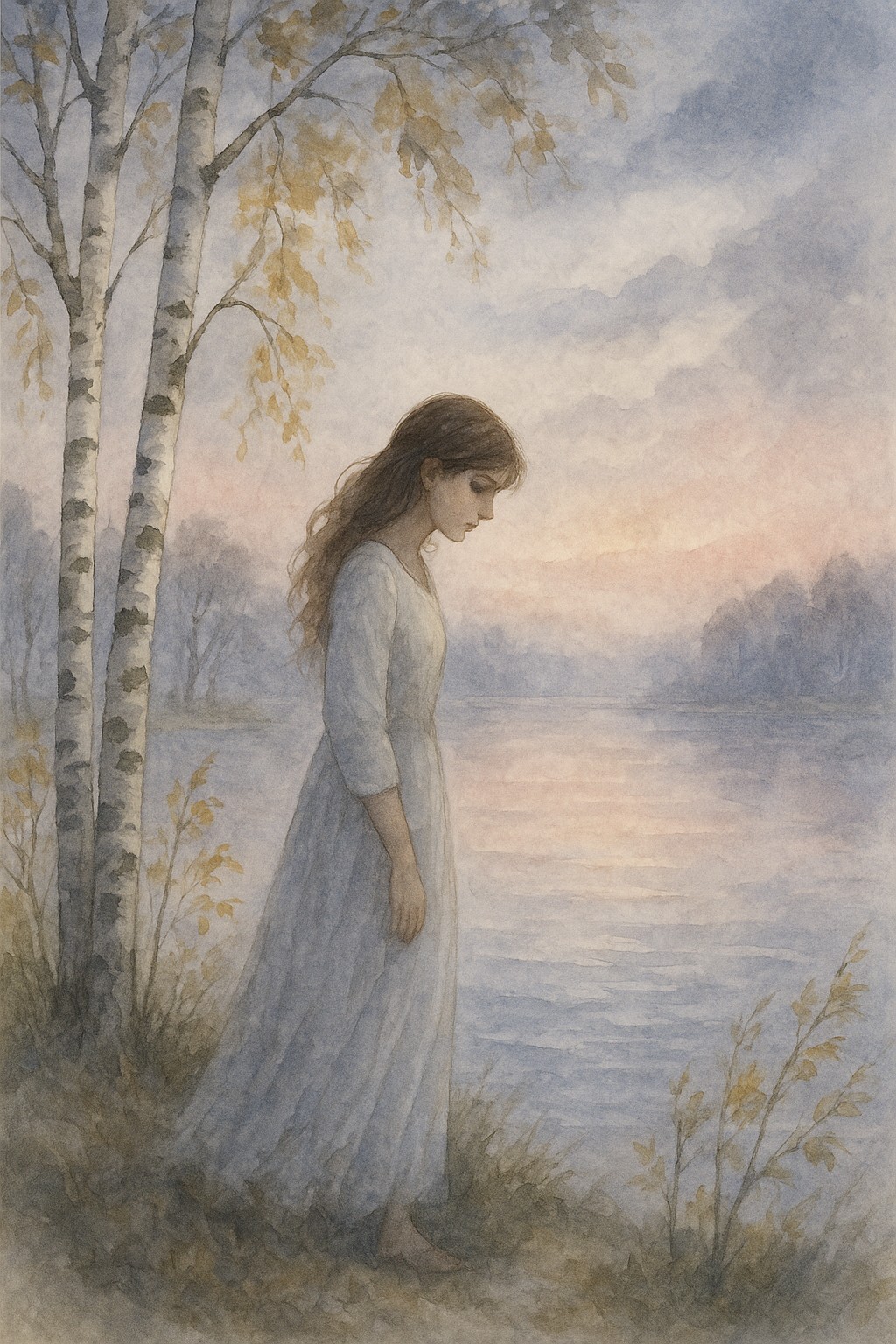 Грустят берёзы, сном укрыты.
