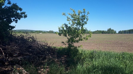 Его надвое делит овраг,