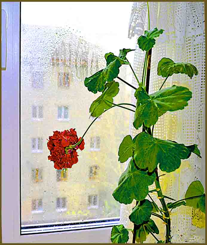 и алый окатыш герани...