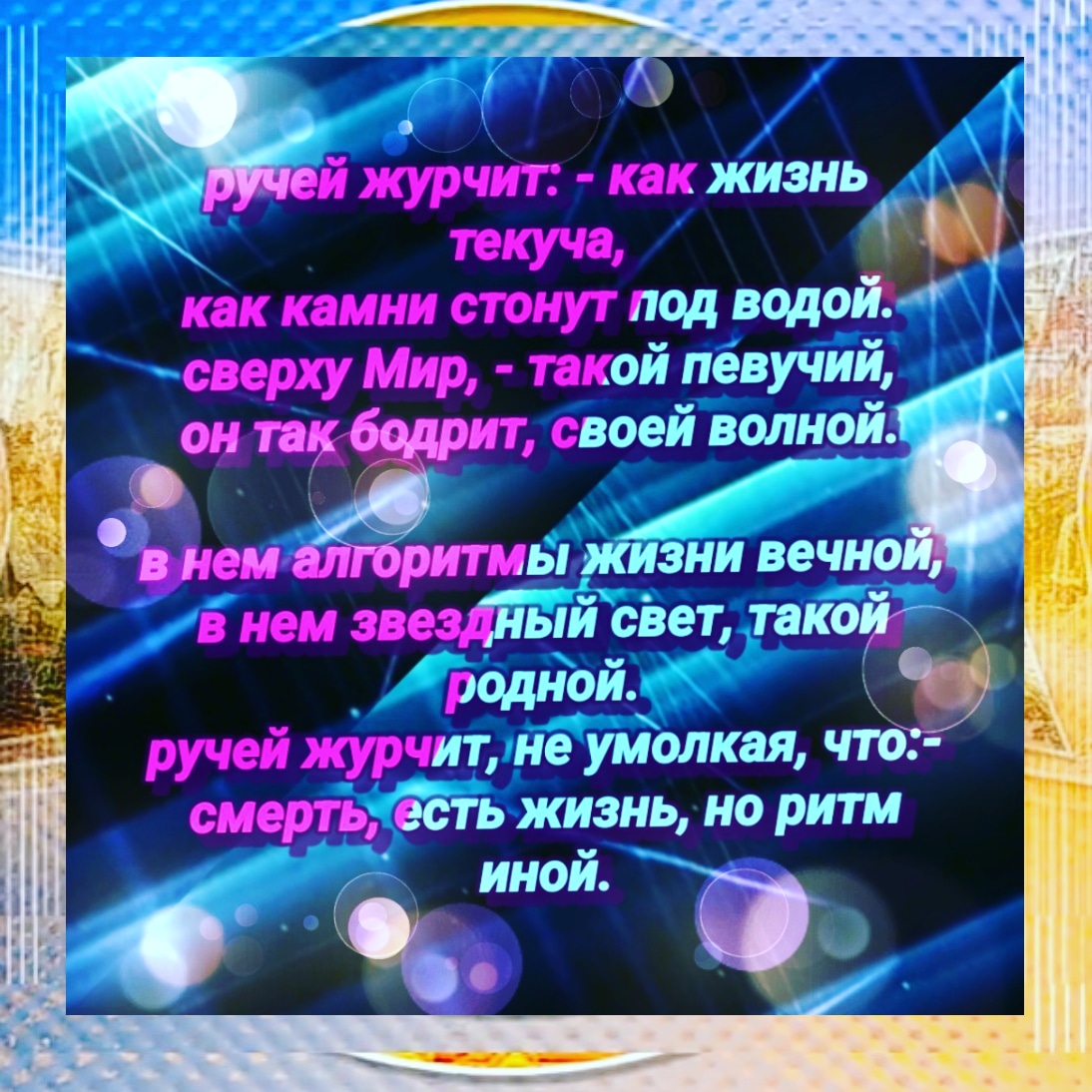 Ручей журчит, - как жизнь, текуча,