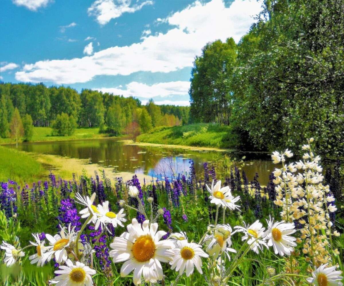 И синей лентою река.