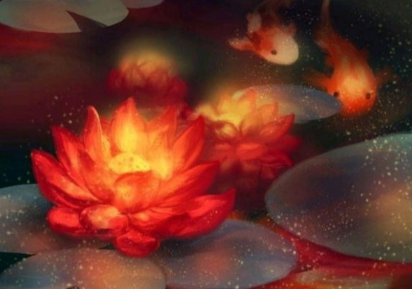 Красный пруд зажег закат,