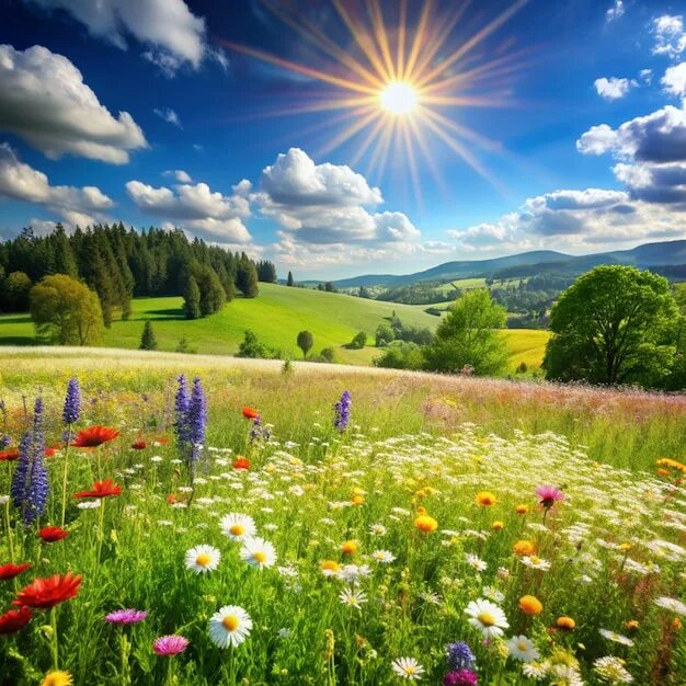 Над бескрайними полями и лугами.