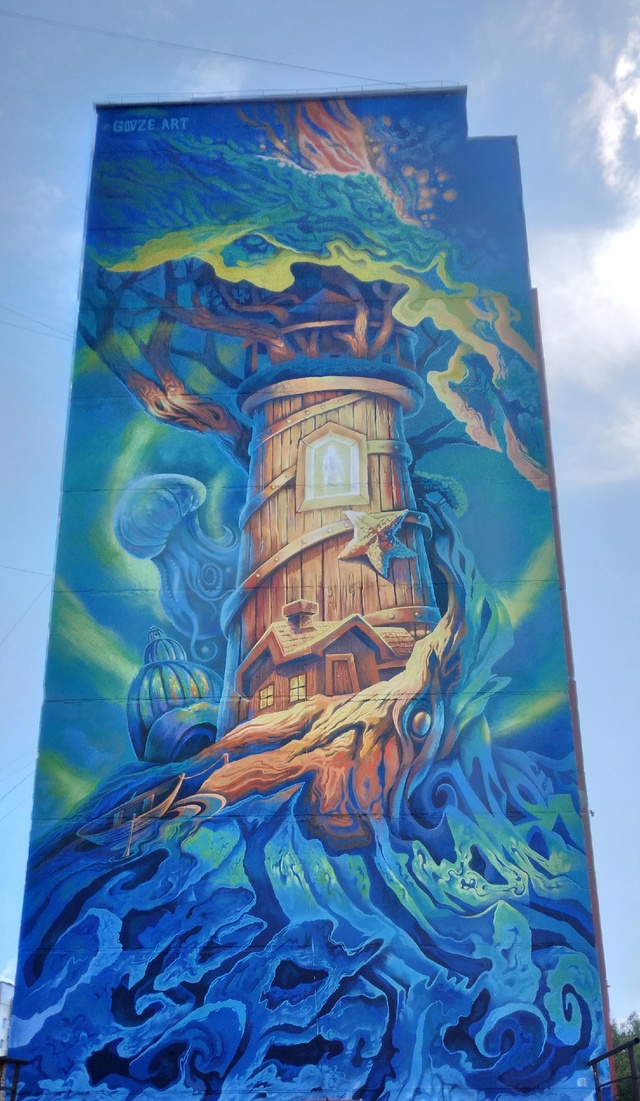 на фото автора - мурал в городе Северодвинске