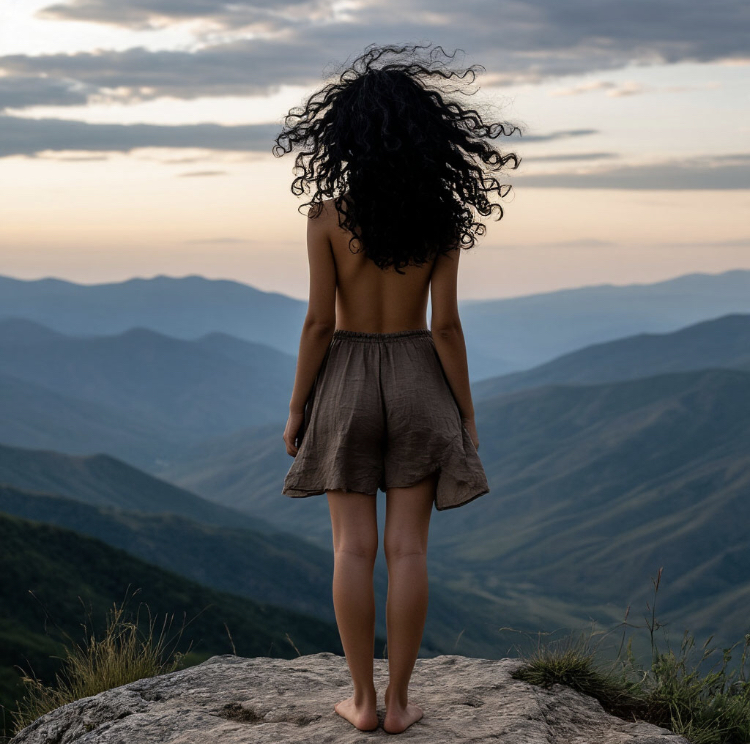 Плечи щекочут чёрные пряди.