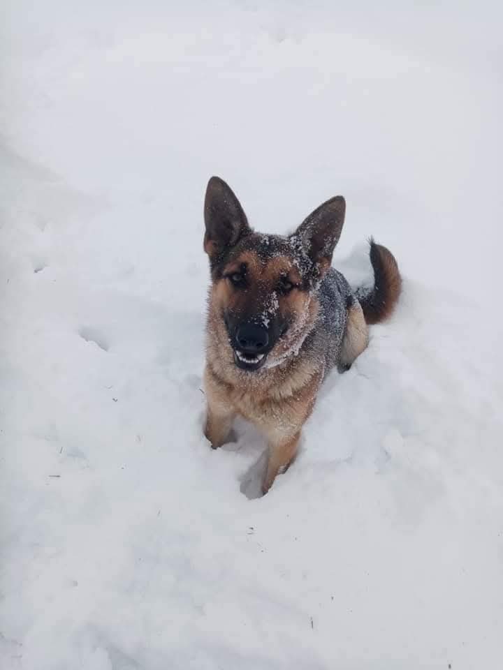 On a patch of last night's snow.