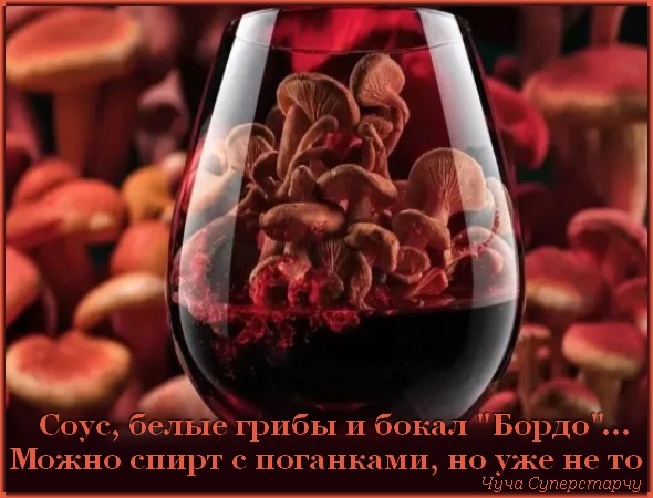 Соус, белые грибы и бокал "Бордо"...