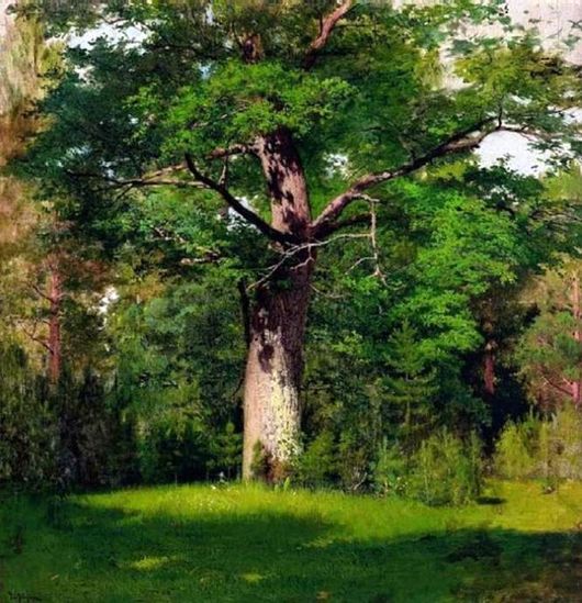 Левитан написал огромный, мощный дуб, растущий на лесной опушке. По листьям дерева скользят переливы солнечного света. Художник прекрасно передал нежные оттенки травы, растущей у основания дерева. Он использовал оттенки красок, идеально передающие цвет смолы сосен, растущих вокруг дуба. Художник большое внимание уделил игре теней на стволе и ветках большого дуба. Зритель, который впервые смотрит на данный пейзаж, поражается глубине передачи оттенков и красок. Любимой темой изображения Левитана были осенние пейзажи, реже он писал картины, посвященные весенней теме, и совсем редко – пейзажи о лете.