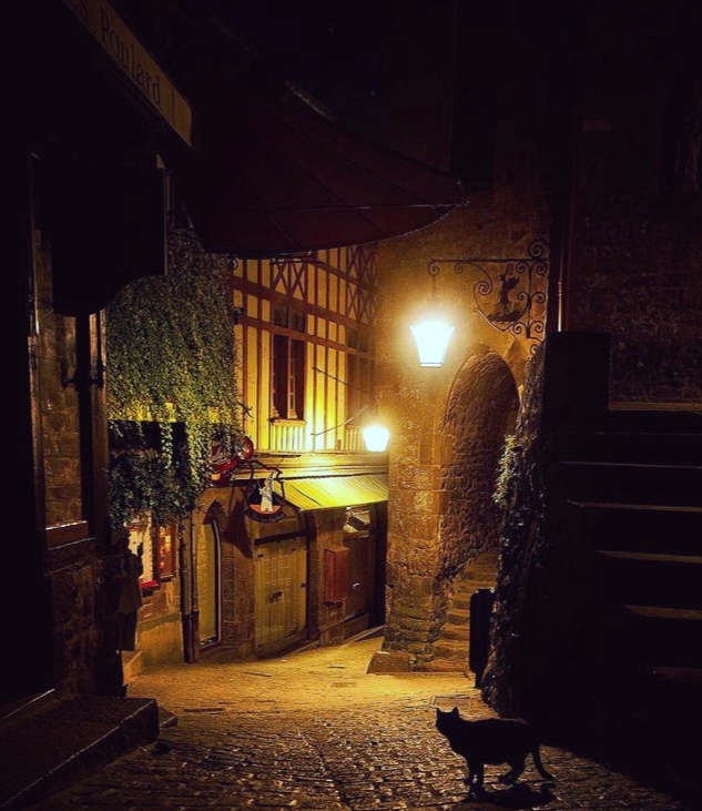 Дремлет ночь в арках старого города,