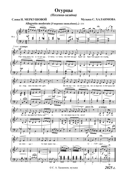Самый распространённый овощ - огурец! В любом виде вкусен: и в свежем, и в солёном, и в маринованном... Универсал! Ну как было композитору Халаимову не написать песенку-загадку?! Написал! СПАСИБО!
