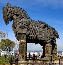 В город коня затащили, доверчивые троянцы,