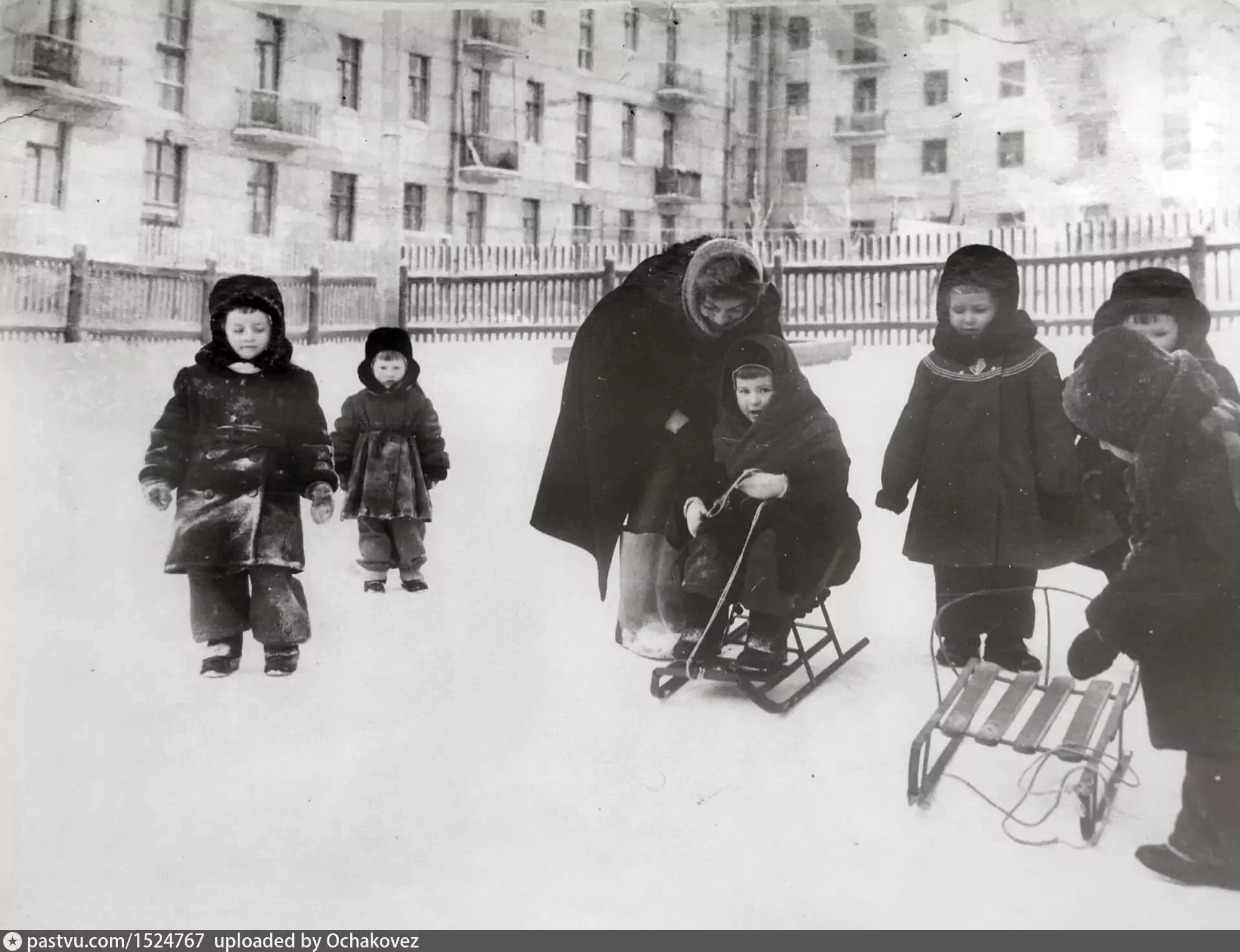 Многие дети скатываются с ледяной горки.
