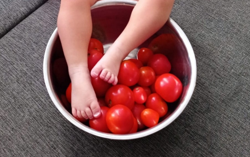 Все томаты раздавила.
