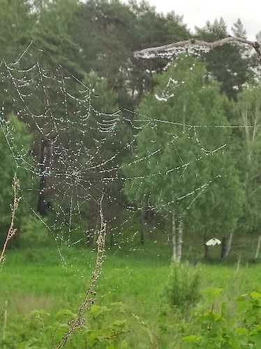 В капельках рядами паутины