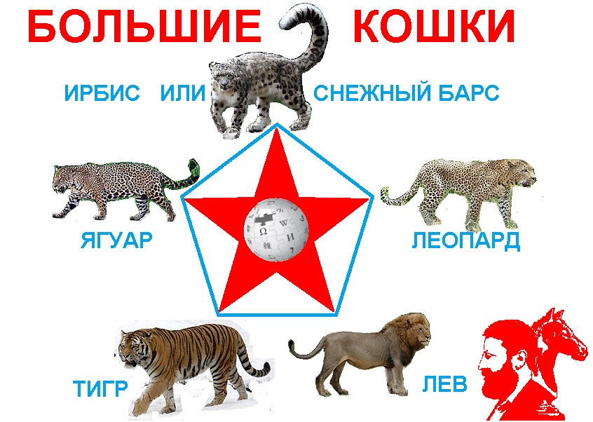 Крошечные мзображения из Википедии (статья "Большие кошки") отредактированы автором (убран фон)