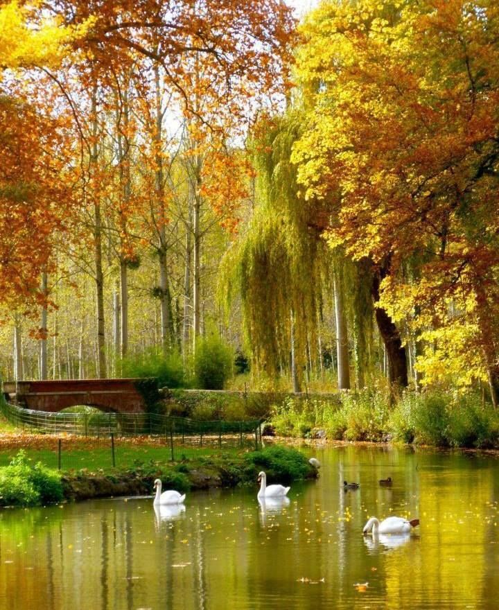 золотая листва. Ветер носит под ногами ковер из багряных листьев. На озере тиха