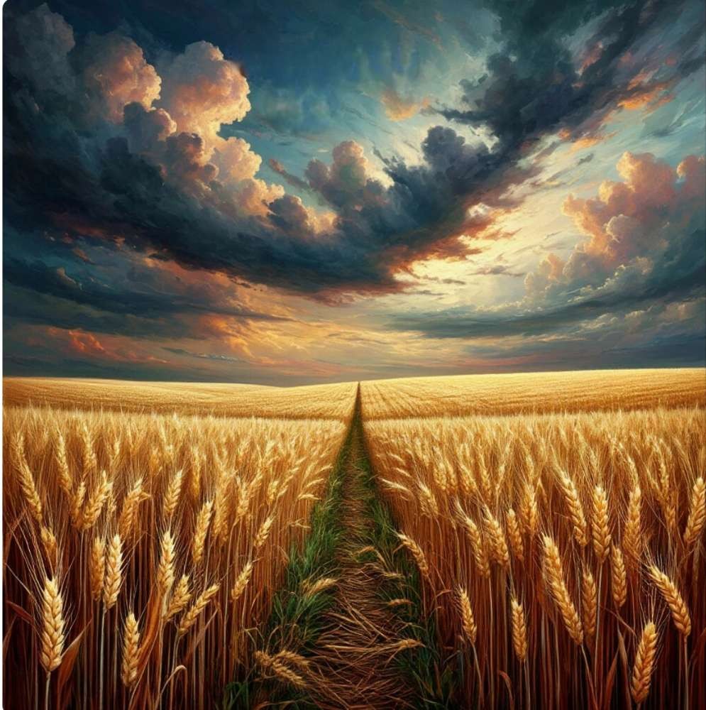 Колосья пшеницы в созрелости скошены.