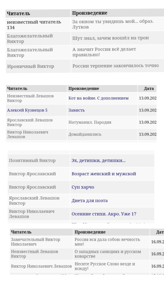 О произведении: Ну, собственно, вот сама картинка, вернее, коллаж, хорошо подтверждает мои слова. И то, что авторы со стажем здесь наперечёт знают местную ботобратию, тоже известно. Но, как говорится, совершенству нет предела. И пошли практически одинаковые авторы-клоны по нашим стихам. Причем в этот раз как-то уж слишком много их развелось здесь. В общем, сами смотрите в списках прочтений это вот всё. Ну а я не мог пройти мимо такого дива и немного прошёлся по этому поводу.