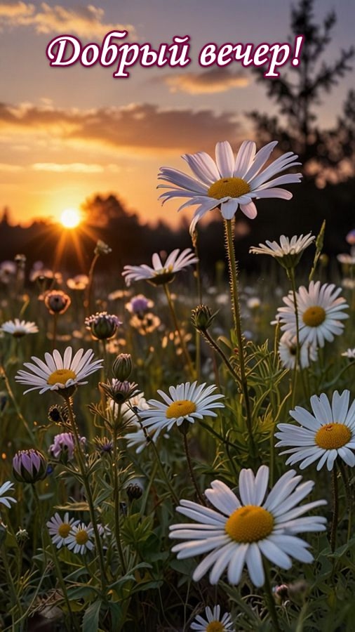 Цветут ромашки на лугу.