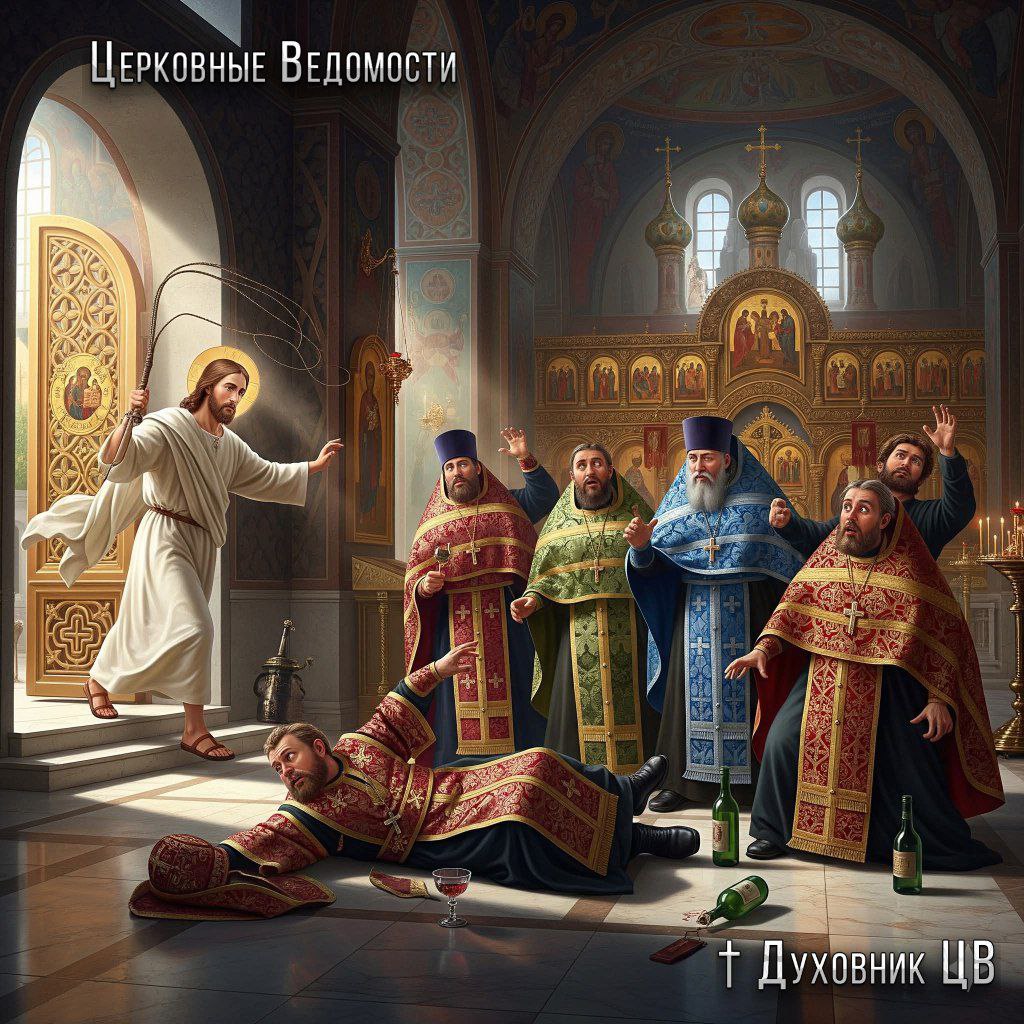 Из храма гонит как шакалов,