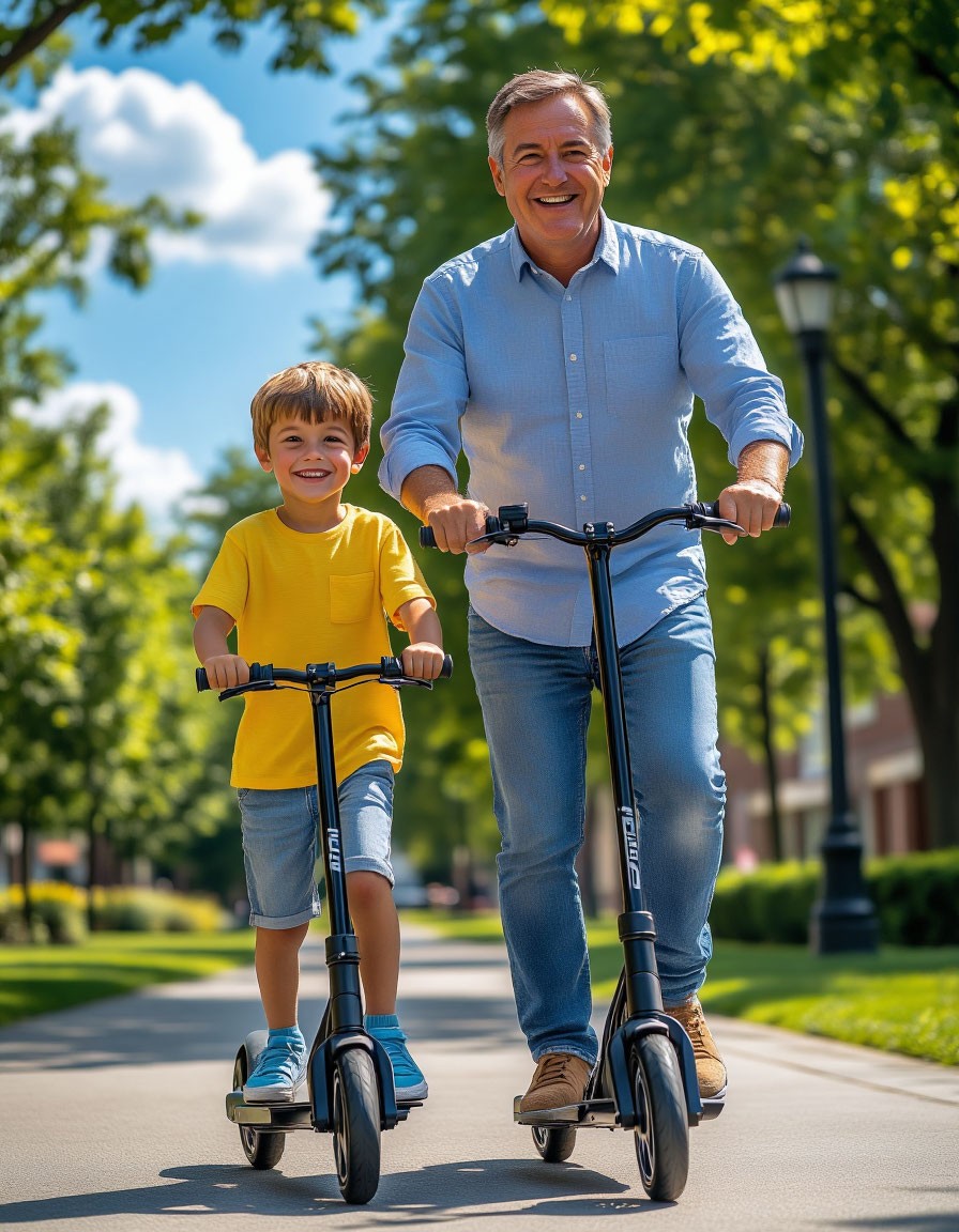 На самокатах вместе мчались.