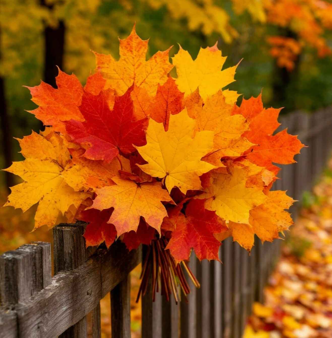 Букетик листвы загрустил на заборе,