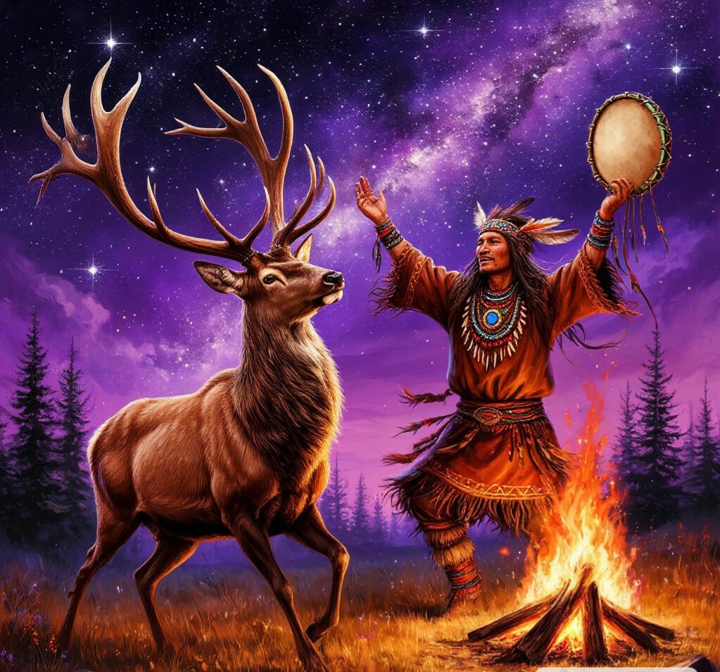 Шаман взывает в танце к Духам,