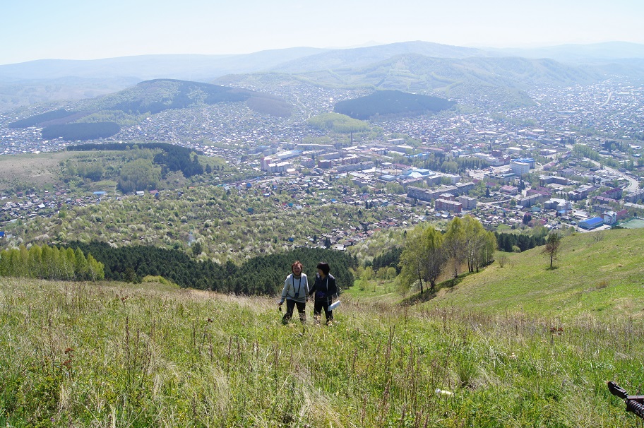 В этот раз решили подняться на вершину горы, из которой торчат останцы выветривания в виде указующего перста, по воздвигнутым недавно ступеням, ведущим на смотровую площадку. Майминцы называют это место, «Чертовым пальцем».